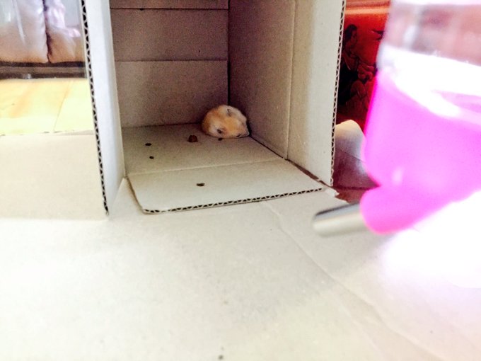 집에 햄스터, 푸딩 혼자 있는데,, 아침에 물만 채워주고 밥은 못 줬는데. 집을 잘 지켜 주겠지? posted at 20:54:10 2018/05/28