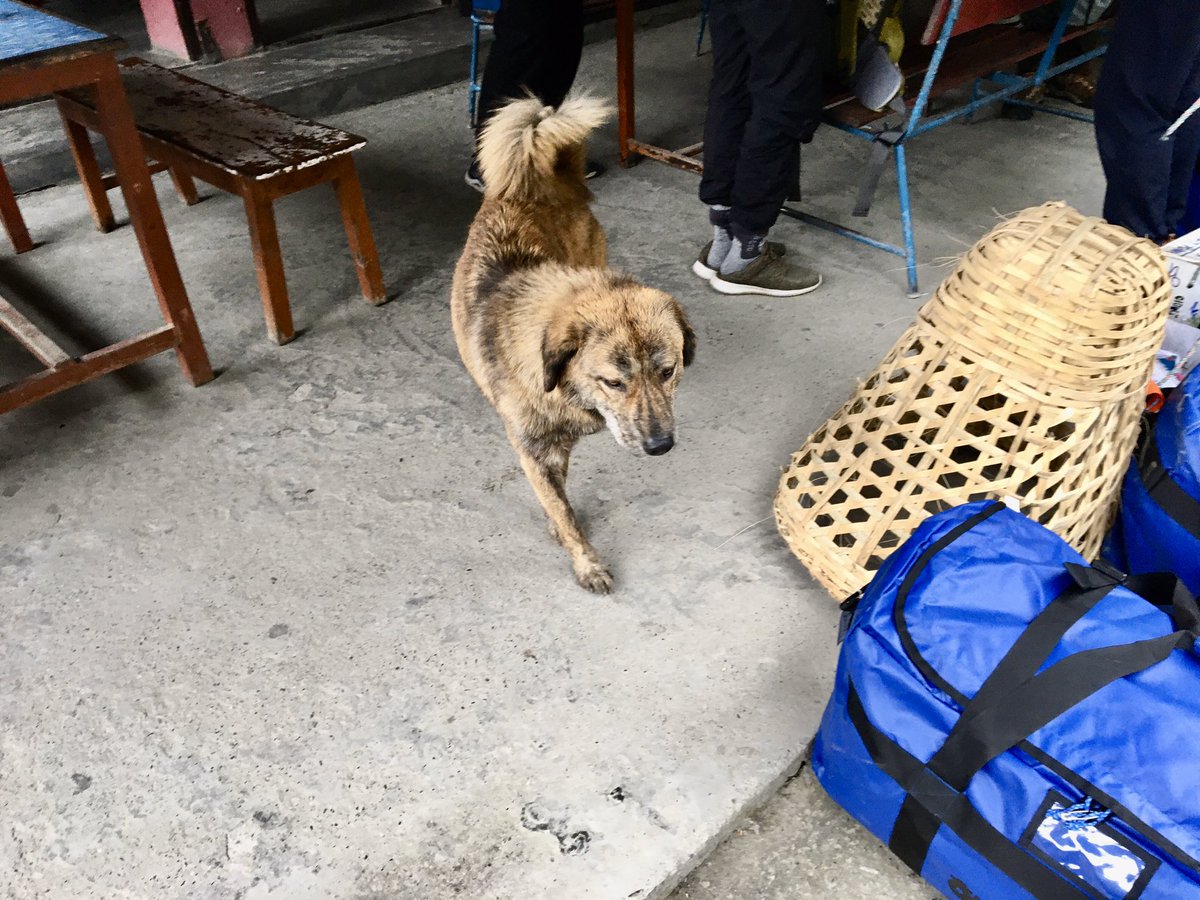 나야폴에 도착, 짐 챙겨 지프차로 갈아타기 위해 기다림. 약간 비가 내려 가게 처마밑 들어와 있는데, 개 한마리가 꼬리를 흔들며 다가온다 posted at 17:57:28