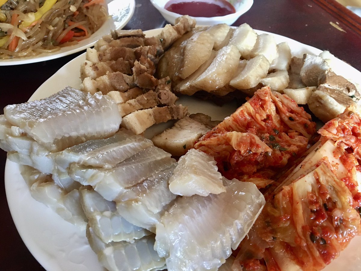 홍어, 삼겹살, 묵은 김치 삼합에 막걸리... posted at 11:36:50 2021/02/12