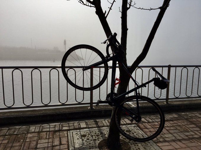 서해아라갑문에서 대명항 까지 오는 길. 광대한 수도권 매립지를 지나오는데, 해무는 자욱, 시야는 제한, 덤프 트럭들과 승용차들은 쌩쌩, 도로는 상태가 좋지 않아 고생함🚴♂️🚴♂️ posted at 13:06:42