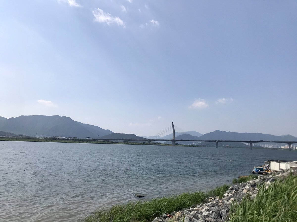 밀양강 낙동강을 두시간 달려 양산물문화관 근처 그늘에서 휴식. 친구가 밥을 싸온다네.. posted at 14:05:06 2021/05/22