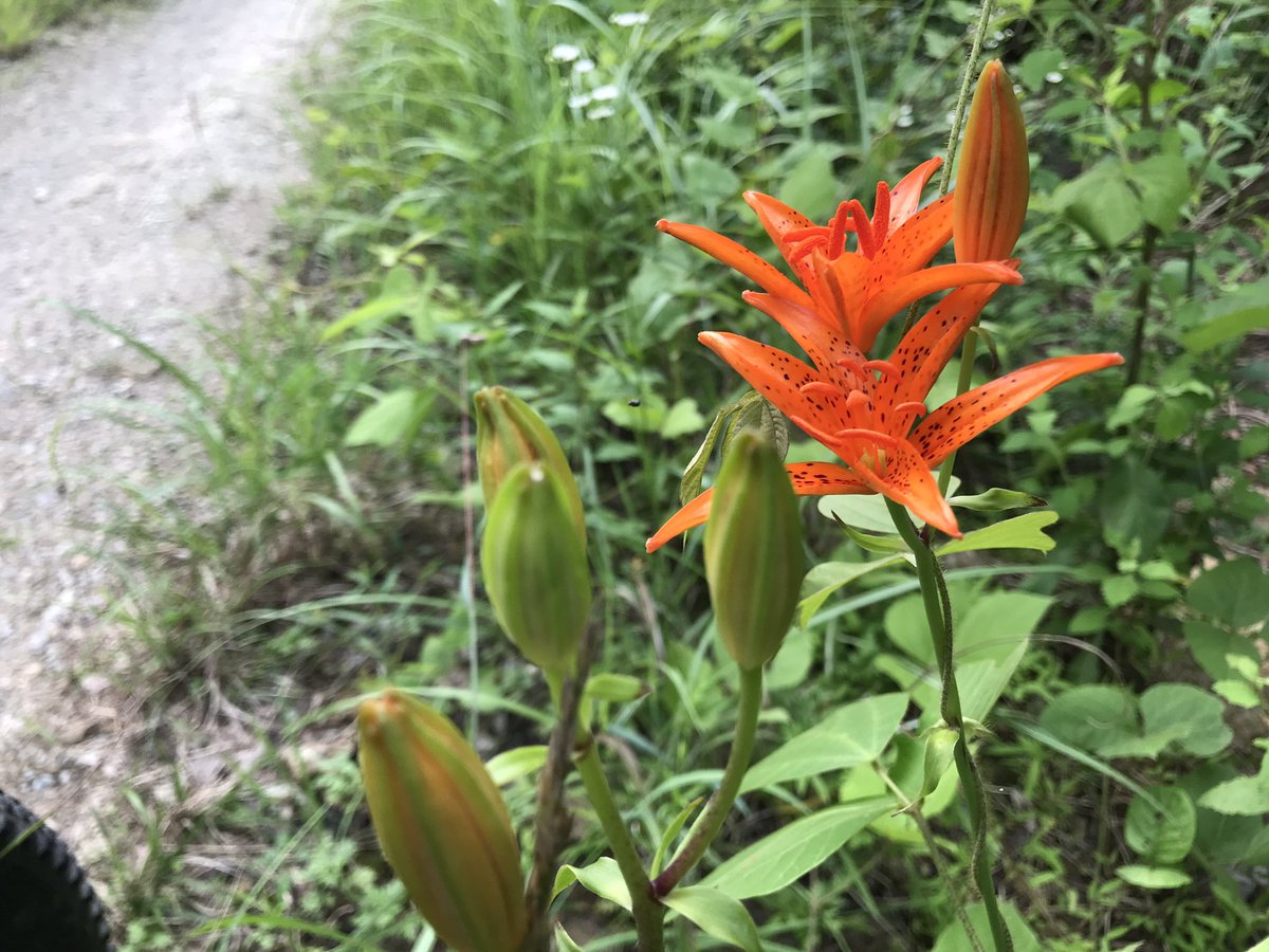 항소리 임도. 내리막 꽃길. 꽃길은 꽃길인데,, 자갈꽃길. 내리막 커브길에선 바퀴가 밀리고 튕기는 스릴을 즐길 수 있음😹 posted at 13:10:57 2021/07/03