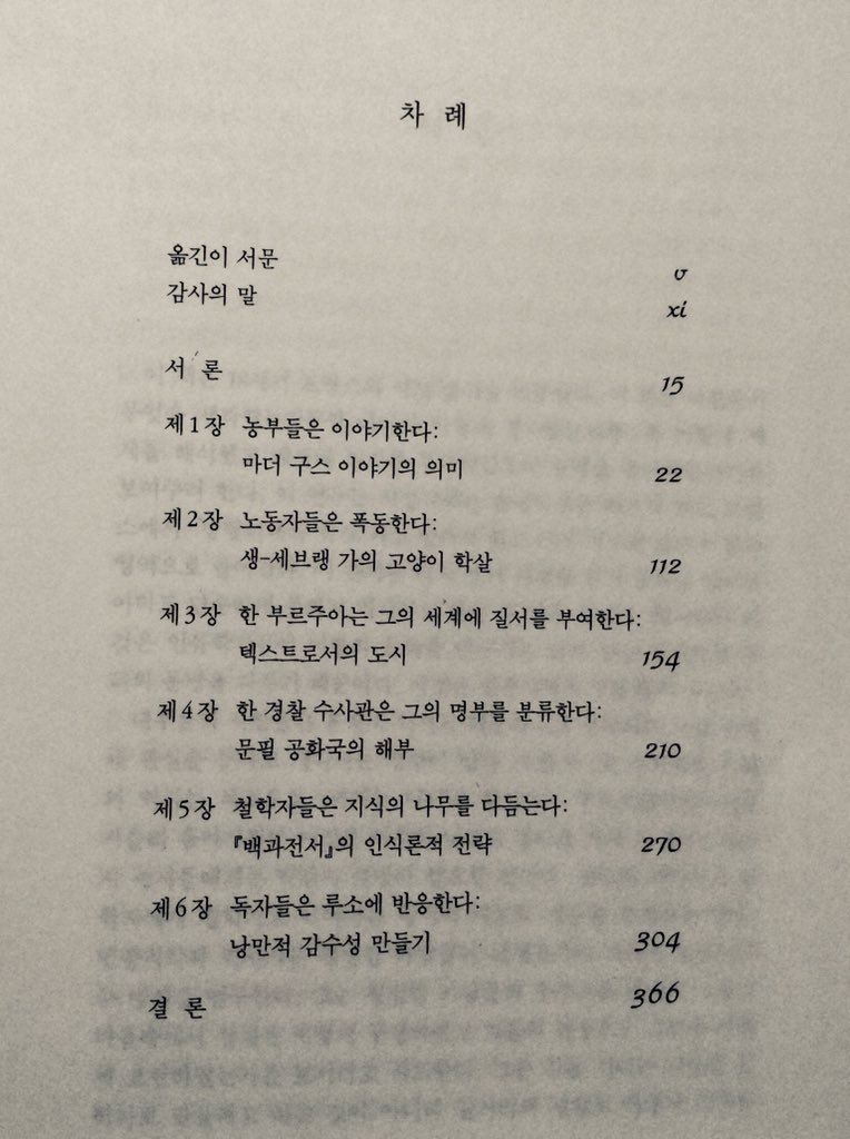 고양이 대학살 The Great Cat Massacre : And Other Episodes in French Cultural History by Robert Darnton ;; 목차가 좋아, 몇일째 목차만 읽고 있다. 아마도 계속 그럴거 같다ㅎ posted at 12:29:45 2021/06/23