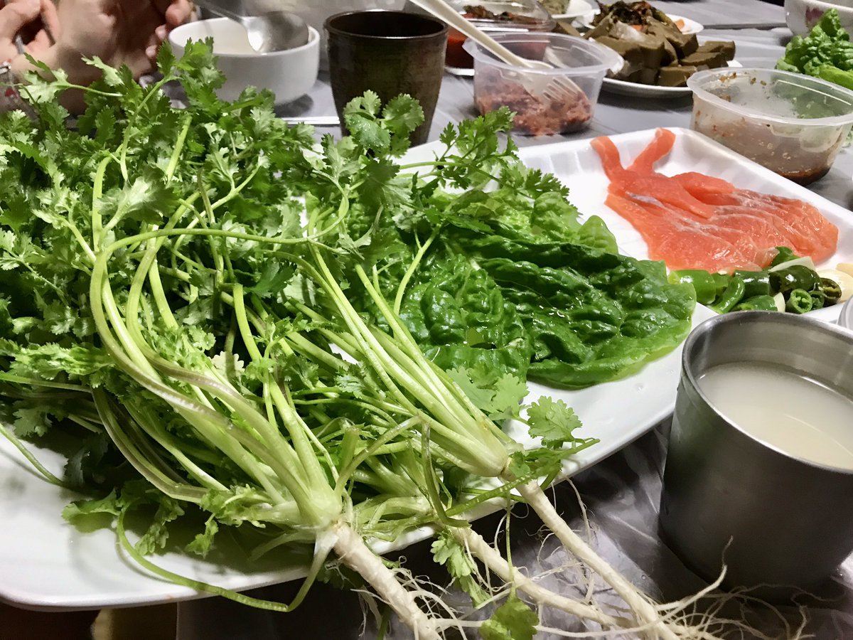 저녁밥상엔 미나리 같은 고수와 배추 같은 상추를 곁들여 먹었다 posted at 18:52:52 2021/10/09