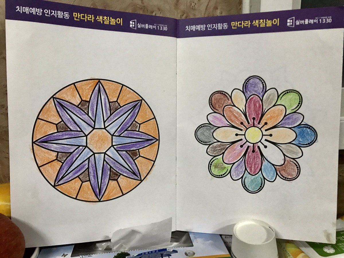 어머니가 치매예방 색칠한거 보여주셨다. 일주일에 한번씩 한다네.. posted at 21:29:22