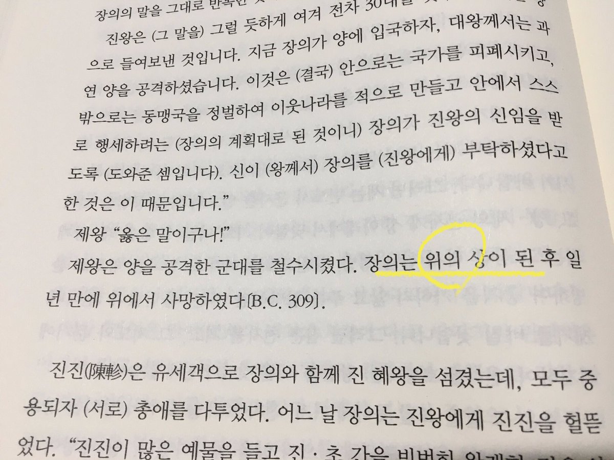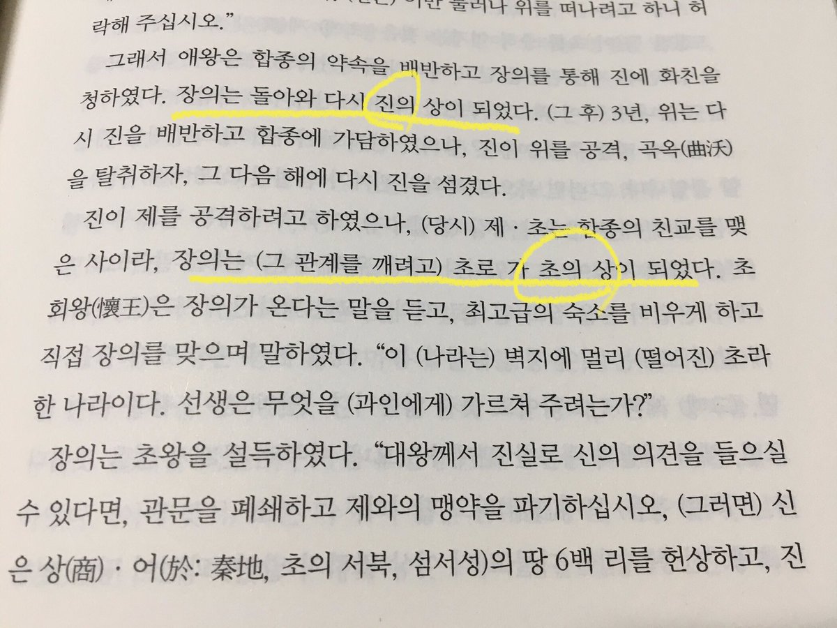 옛날 중국 고대사를 읽다보면, (춘추전국시대) 정치 유세객들과 재상들은 국가간 직업이동이 상당히 활발함을 알 수 있다. 장의라는 진나라의 재상이 위나라의 재상으로 이직을 한 케이스. 당시 국가/조정이란게 오늘날 회사와 같은.. 상대국 재상을 스카웃하기도 하고, 스스로 이직하기도 하고.. posted at 23:07:06 2022/08/09