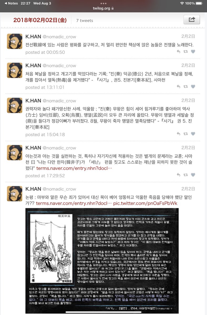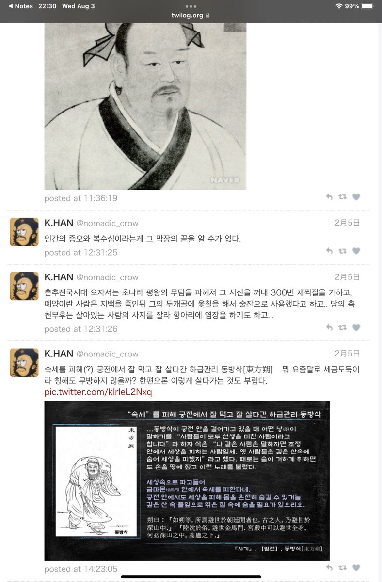 사마천의 사기 읽다가,, 예전에 재미삼아 인터넷에서 史記 띄엄띄엄 읽으면서 올렸던 관련 트윗을 몇개 찾아 보았다. posted at 22:33:27 2022/08/03