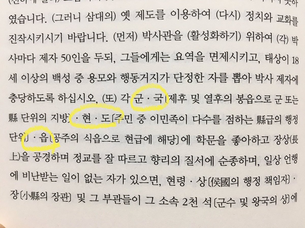 한나라시대의 지방 편제. 근현제.. 군.국 - 현.도 - 읍 이라는 체제… 제후는 군-현, 열후는 국-도, 공주에게는 읍을… 이런 제도의 흔적(명칭)이 현재까지 우리나라에 남아 있다. posted at 21:40:41 2022/08/25