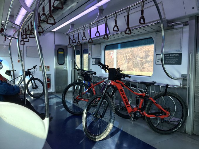 사람들 많이 빠지고, 용문역으로 가는 전철 안에 자전거 몇 대 남았는데, 모두 MTB. 또 하나 특징적인 것은 대체로 연세가 있어 보인다는 것. 60대 초로가 아닌 70대로 보이는,,, 노인네들이 힘이 좋아 산만 타나봐ㅎㅎ posted at 09:33:29