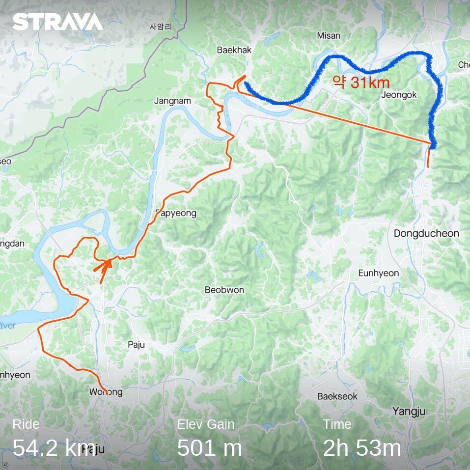 2023/03/26 임진강 라이딩 : 동두천 소요산역에서 파주 월롱역까지.. 스트라바 앱의 작동 오류인지 폰이 버벅 거린건지, 소요산역에서 연천 백학면까지 기록이 누락되었고, 이후에도 중간중간 버벅거림. 초반 31km 더하면 오늘 약 85km 달렸네. strava.app.link/kgO7TjzEtyb pic.twitter.com/cMxS208Vrn