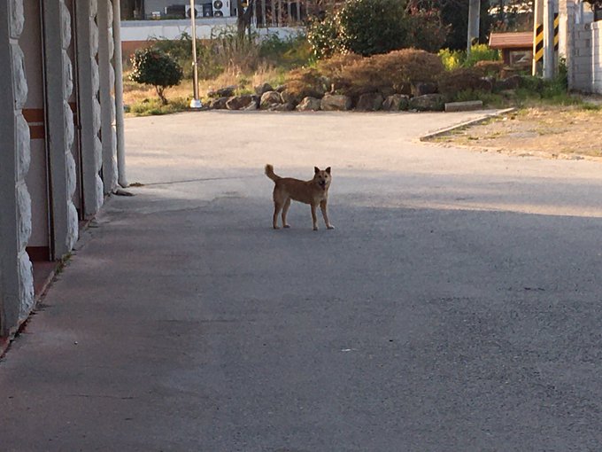 숙소 나와 출발 준비하는데 댕댕이 한마리가 웃으며 나를 바라본다 posted at 07:41:00