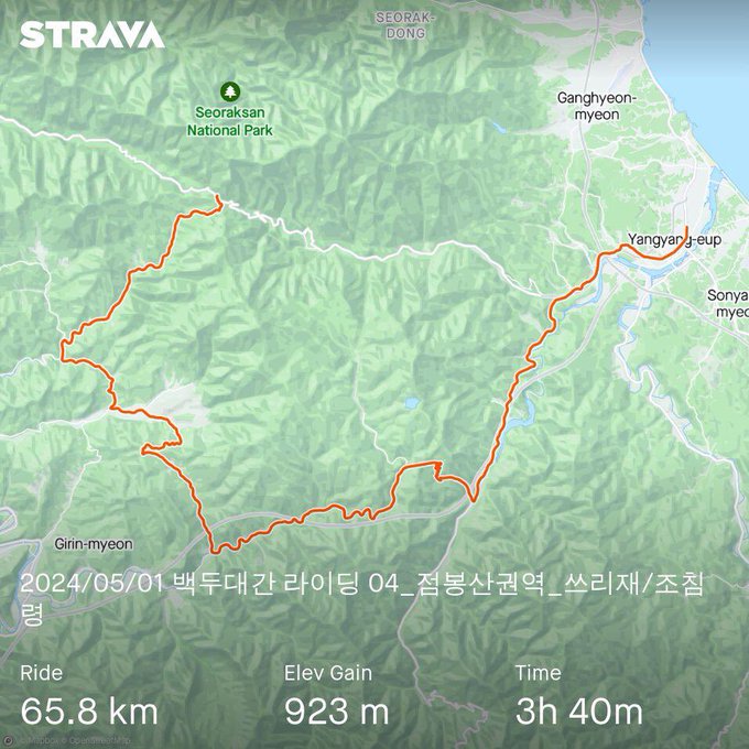 2024/05/01 백두대간 라이딩 04_점봉산권역_쓰리재/조침령 strava.app.link/tioW4uiFeJb