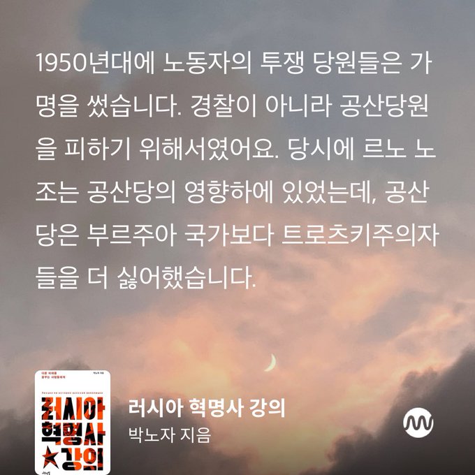 트로츠키주의자들의 가장 큰 문제는 자신들의 적을 부르주아가 아닌 또 다른 트로츠키주의자로 상정한다는 점입니다. 체제와의 싸움보다는 내부 싸움이 훨씬 치열한 거예요. - <러시아 혁명사 강의>, 박노자 :: 그렇지... 그 무엇보다 내부투쟁이 가장 중요한 싸움이지ㅎ😹 posted at 17:05:33 2024/08/05