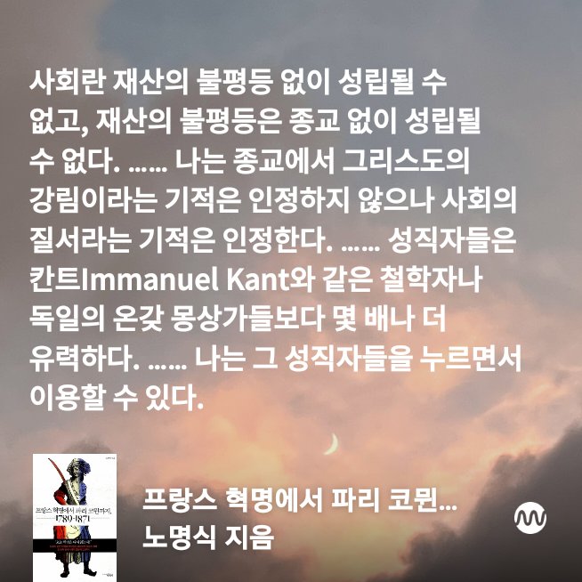 "우리는 혁명에 관한 낭만을 끝냈다. 이제 우리는 혁명의 역사를 시작해야 한다. 혁명 원칙을 적용하는 데에 현실적이고 가능한 것만을 보아야지 사변적이고 가설적인 것을 보아서는 안 된다. 그렇지 않으면 그것은 통치가 아니라 철학이다" <프랑스 혁명에서 파리 코뮌까지, 1789~1871>, 노명식 지음