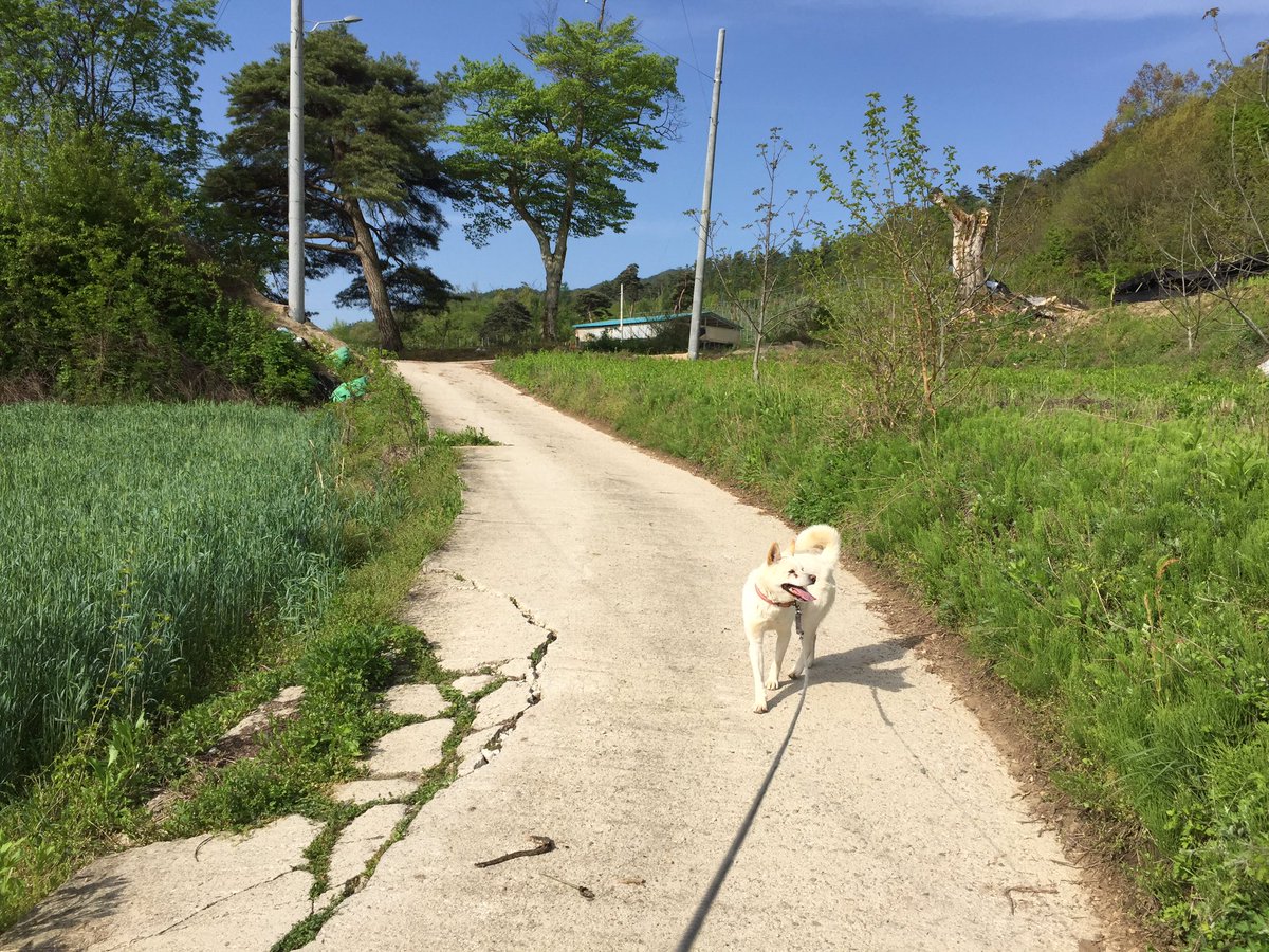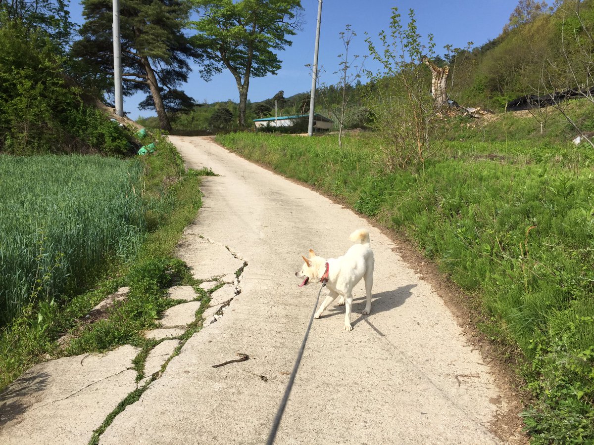 그동안 묶여만 있던 별이를, 제각으로 데리고와, 자유롭게 돌아다니라고 풀어 주었다. posted at 15:12:01 2017/05/03