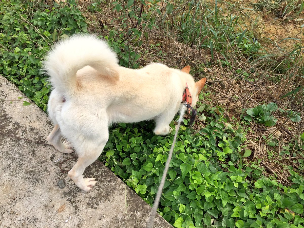 별이와 산책. 열심히 풀냄새를 맡고 있는... posted at 09:00:14 2016/09/14