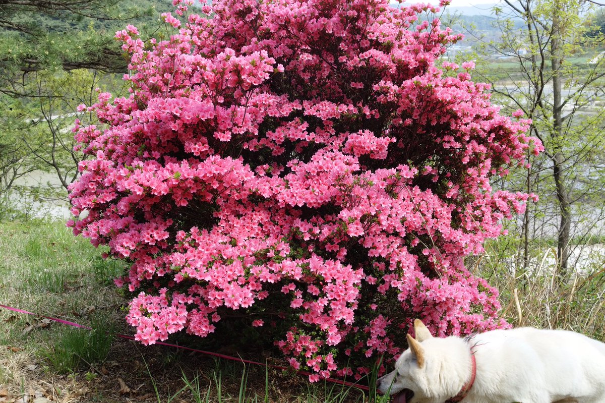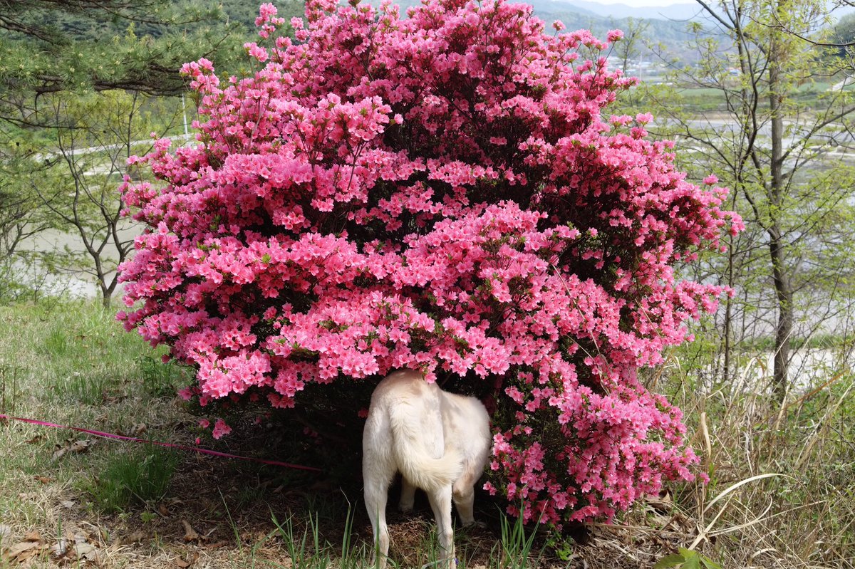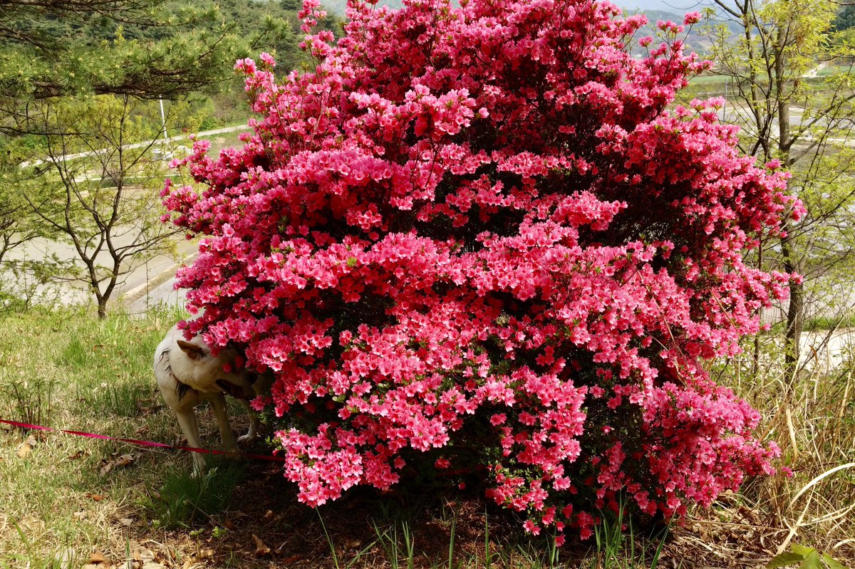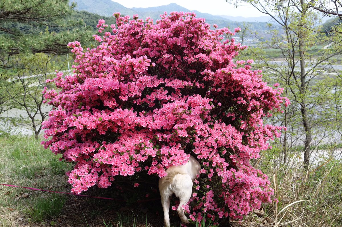 무덤가의 예쁜 꽃 사진찍고 있는데,, 별이, 엉덩이 들이 밀며 꽃나무 속으로 헤집고 들어감😸😸 posted at 15:18:00 2019/05/04