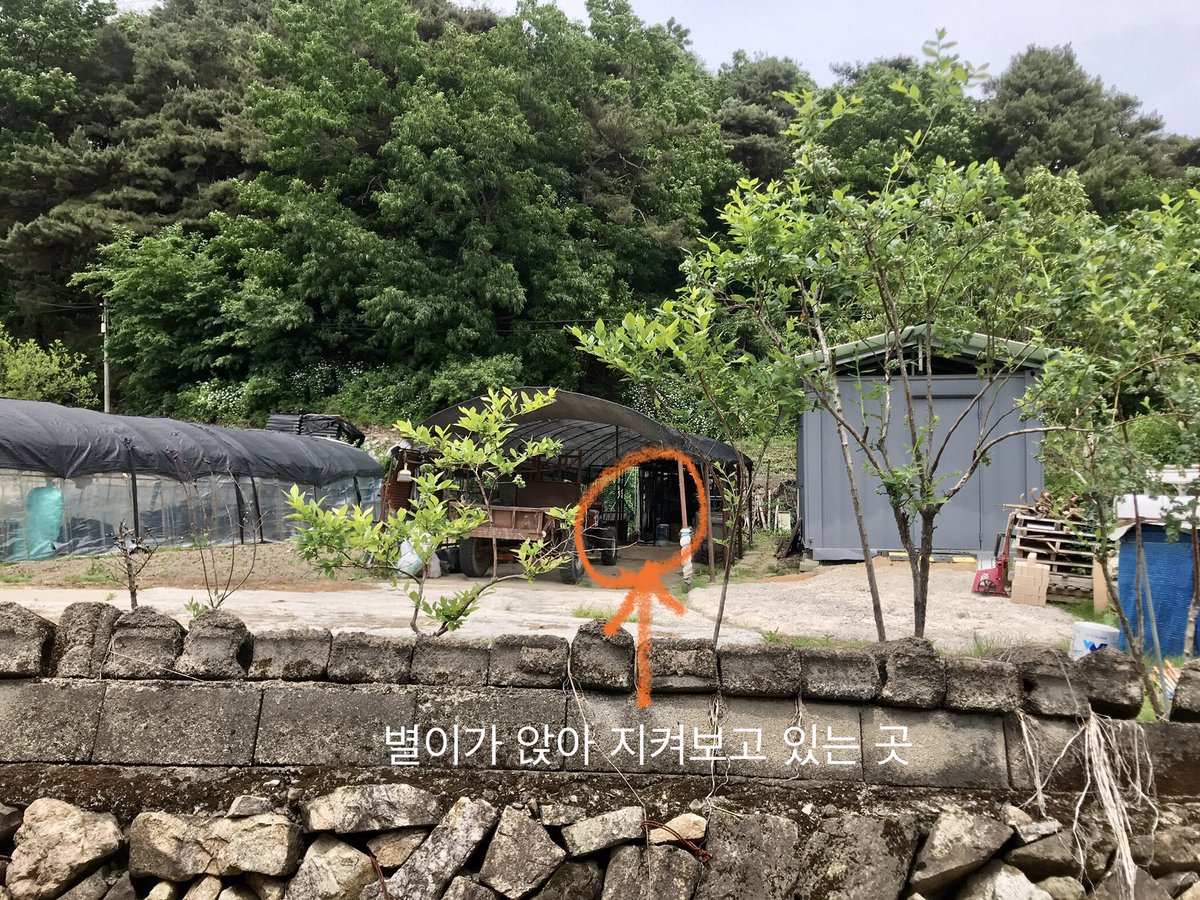 집에서 뒷밭으로 난 창문을 열어 놓고 내다보니, 별이가 집 방향으로 앉아 집을 감시하고 있다ㅎㅎ 왔는데 산책도 안 시켜주니 인간이 뭐 하나 두눈 뜨고 지켜보는 듯... ㅎㅎ posted at 11:35:47 2023/05/24