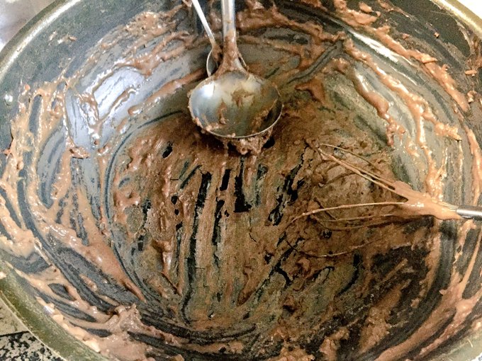 도토리(+밤) 묵을 만드는게 쉬운게 아냐,, 끓이기 시작하는 처음부터 끝까지 열심히 저어줘야 하는데, 팔이 후들거리고 저려온다. 묵을 다 끓이고 난 후 나머지는 누룽지처럼 긁어 먹기 위해 마지막 열을 가함... pic.twitter.com/yPR7typ8ls posted at 17:30:51 2017/01/27