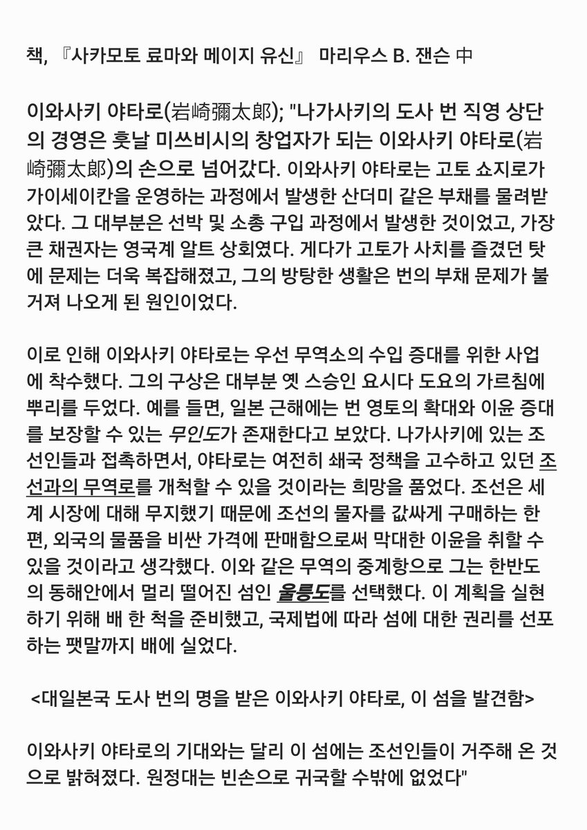 이와사키 야타로(岩崎彌太郞),, 울릉도.. 어이 없음ㅋ '내가 일본이란 섬을 발견했다! 일본은 이제 내 꺼다'ㅋ posted at 15:01:21 2025/07/22